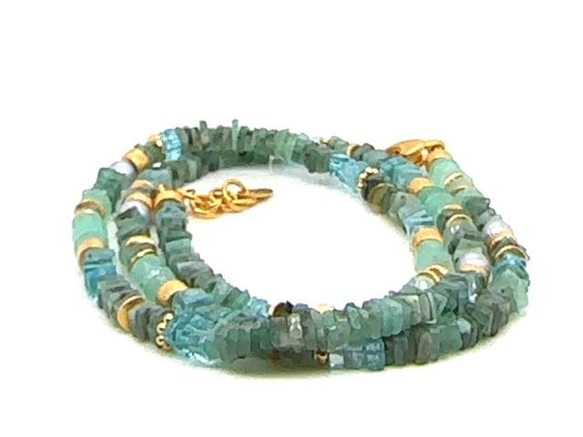 Die Aquamarin Halskette die Marianne kürzlich gefertigt hat.